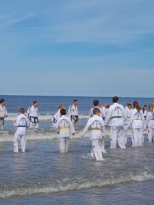 Deze strandtraining wordt jaarlijks door Oh Do Kwan georganiseerd en dit jaar was het voor het eerst dat het ook een open strandtraining was; wat betekende dat er ook andere Taekwon-Do bonden welkom waren. Een 90 tal mensen was komen opdraven, dus een hele mooie opkomst.